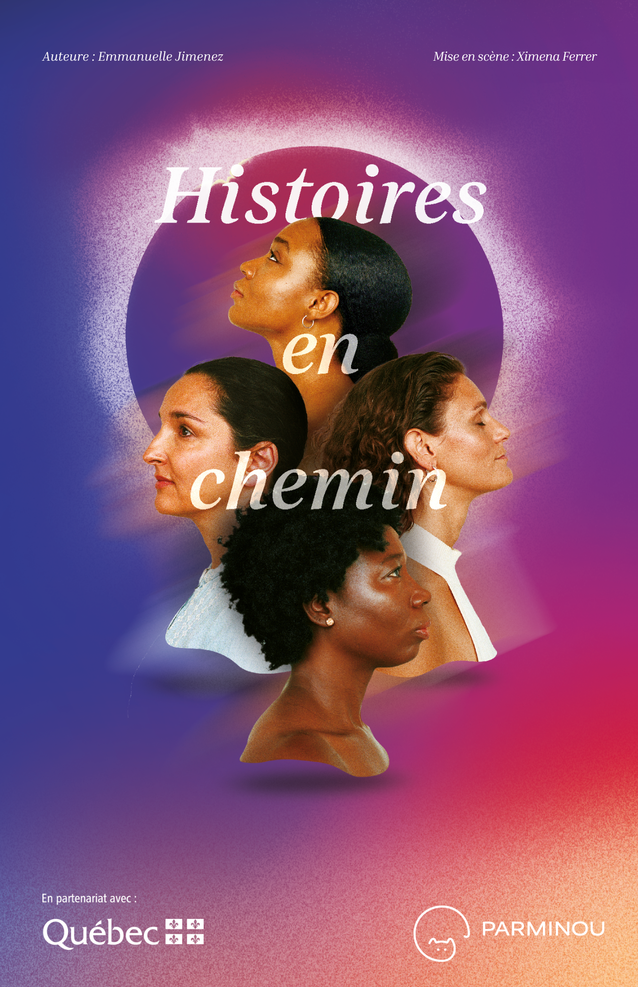 Le projet : la pièce de théâtre “Histoires en chemin” a été créée en octobre 2024 par le Parminou, grâce au soutien financier du ministère de l’Immigration, de la Francisation et de l’Intégration. Entre le mois de novembre 2024 et le mois de juin 2025, il y aura 51 représentations de la pièce dans tout le Québec. La pièce, qui s’adresse à un large public, s’inspire d’un processus de documentation mené en 2023 par le Théâtre Parminou. Environ 60 femmes ont généreusement accepté de partager leur expérience d’accueil et d’intégration au Québec.